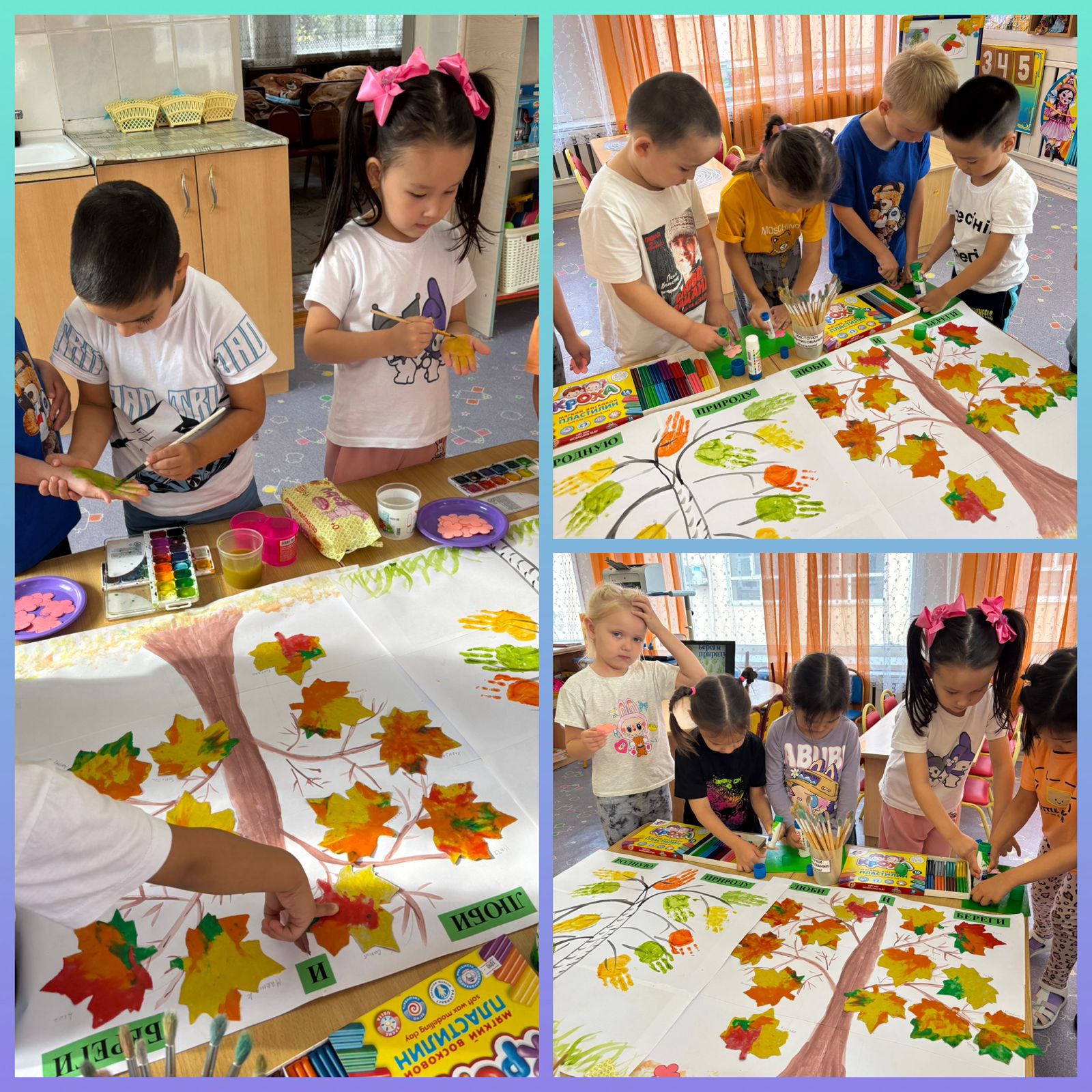 "Жасыл балабақша" экологиялық тәрбие жөніндегі іс - шаралар жоспарын іске асыра отырып, "Аққу" тобының балаларымен шығармашылық іс - шаралар ұйымдастырылды, онда балалар түстердің дүрбелеңін көрді: ағаштар алтын, қызыл, жасыл да кездеседі. "Көру" және "тыңдау және есту" дағдылары өздігінен дамымайды, туғаннан дайын күйінде берілмейді, бірақ тәрбиеленеді. Табиғат әлемі таңғажайып және әдемі!