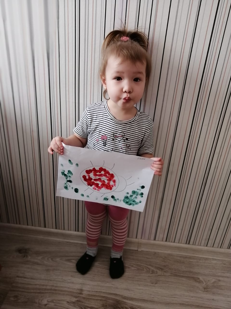 - Оқыту: қағазға қылқаламмен дақ түсіре білуді үйрету, бояумен ұқыпты жұмыс істеу дағдыларын қалыптастыру.