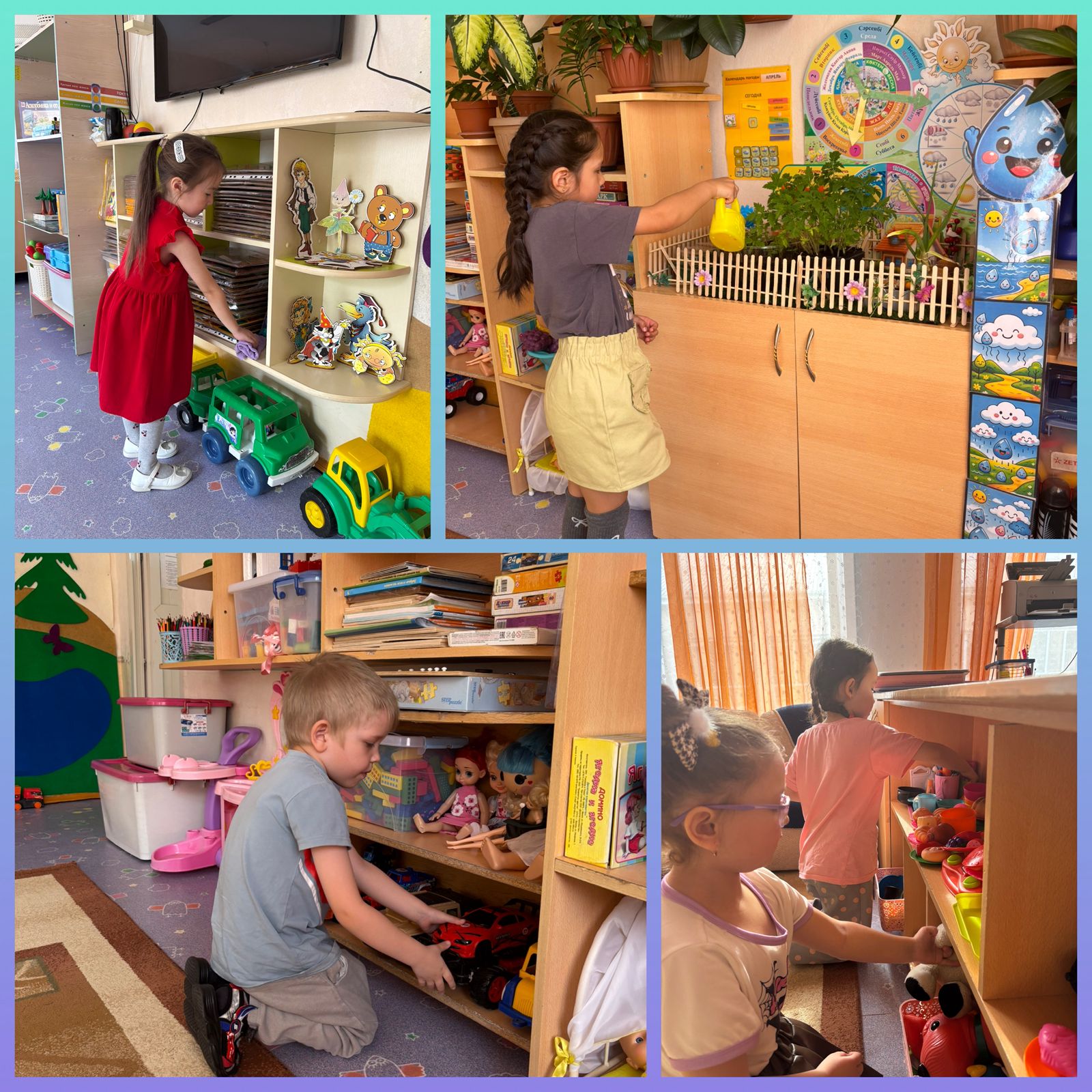 Реализуя план мероприятий «Закон и порядок в дошкольных организациях с воспитанниками группы «Аққу» был организован совместный труд «Порядок и аккуратность». Дети успешно могут выполнять несложные обязанности по обслуживанию коллектива, уже способны к элементарной ответственности за порученное дело. Было отмечено, что во всяком деле важны порядок и аккуратность.
